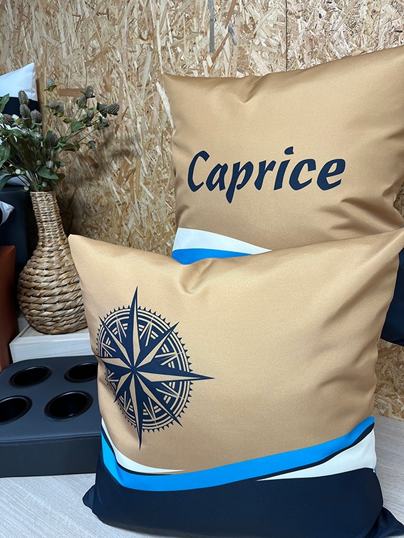 Geef je boot of tuin een persoonlijke en stijlvolle touch met onze buitenkussens op maat. Laat de naam van je boot, je ligplaats of een andere tekst naar keuze subtiel verwerken in het ontwerp.