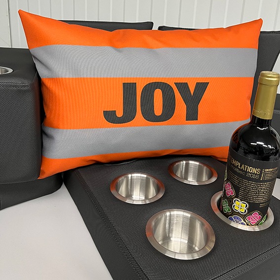 Onze kussens worden gemaakt van hoogwaardige outdoorstof, zijn waterafstotend en UV-werend. De kleuren blijven lang mooi, bij gebruik op het water.