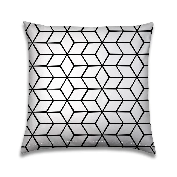Geef je tuin, balkon of loungehoek een moderne boost met het Buitenkussen Black and White Geometric.